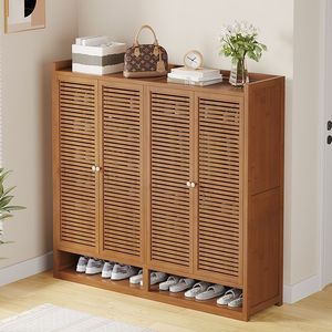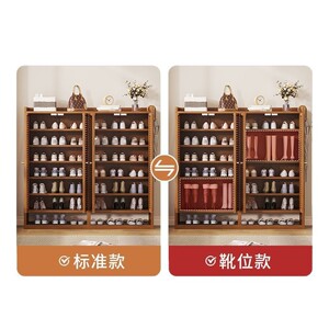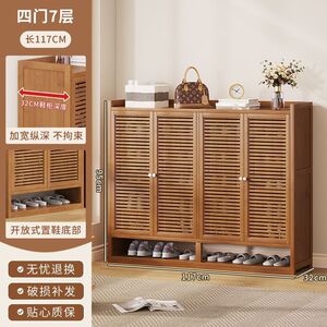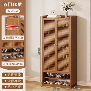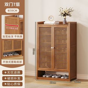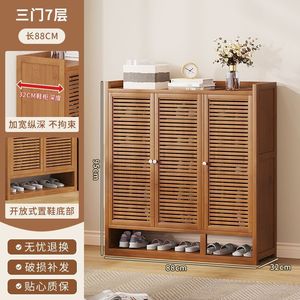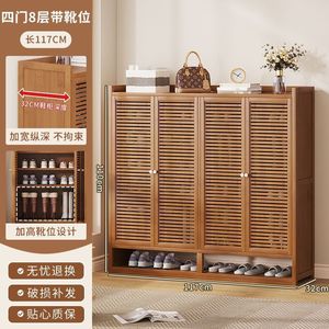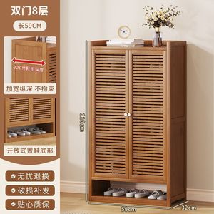家用门口楠竹新款鞋柜防尘百叶门入户玄关落地鞋架多层收纳大容量