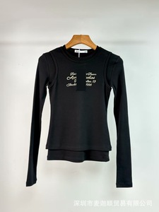 南油高端女装25秋冬新款撞色字母logo印花假两件圆领休闲百搭上衣