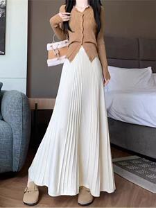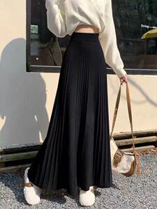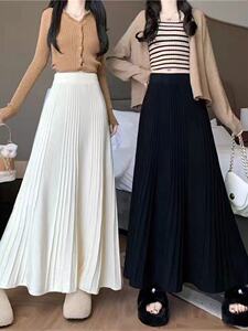 鱼尾半身裙女春秋季高腰中长款荷叶边包臀裙显瘦毛线针织长裙韩式