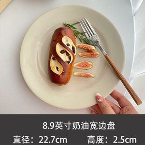 韩国陶瓷批发餐盘早餐盘陶瓷温暖木心拍照摆风家用奶油色菜盘