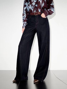 艾**丝女装2025秋新款简约显瘦百搭阔腿直筒休闲牛仔裤女AR323030