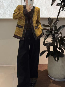 拼色V领小香风外套女欧洲站2025秋季新款韩版重工高级感时尚上衣