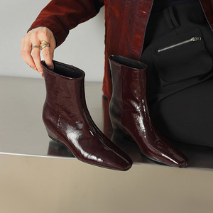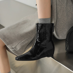 5cm好穿!法式气质内增高洋气短靴女高级感老钱风真皮方头小踝靴