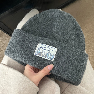 韩系贴布毛线针织帽子女2025秋冬保暖护耳防寒套头冷帽网红小众