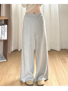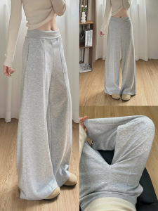 浅灰色美式休闲阔腿裤女秋季新款高腰宽松垂感卫裤小个子运动裤子
