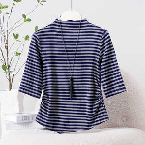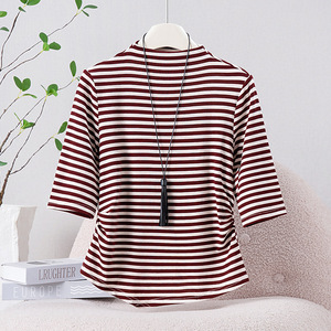 条纹百搭半高领短袖T恤女秋季2025年新款修身显瘦打底衫气质上衣