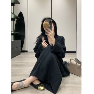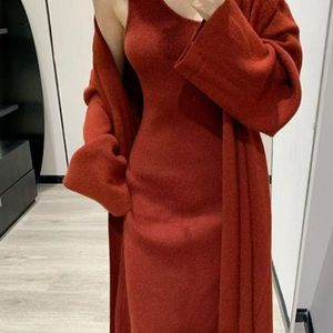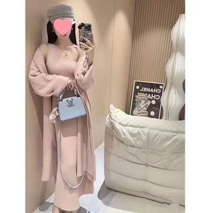 港风复古包臀斜肩背心针织连衣裙套装女保暖中长款毛衣开衫两件套