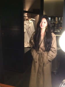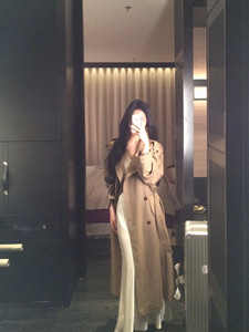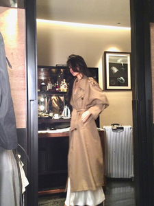 从一时刻【韩剧女二风】感大翻领双排扣系带收腰长款风衣外套