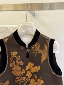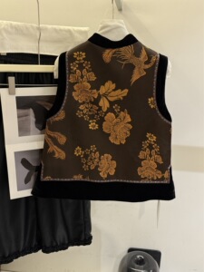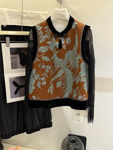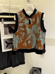 新中式立领凤凰生花人丝马甲背心女2025秋季复古丝绒拼接国风衬衫