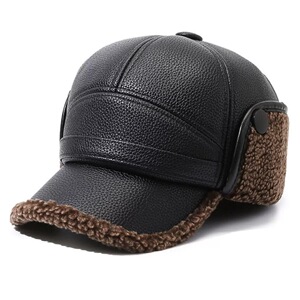 皮面加绒老头帽