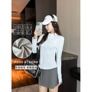 【加绒石墨烯】瑜伽外套秋冬女立领曲线拉链长袖显瘦运动外穿上衣