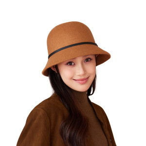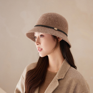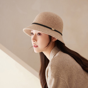 新款法式赫本风羊毛呢渔夫帽女秋冬季优雅复古盆帽名媛小香风帽子