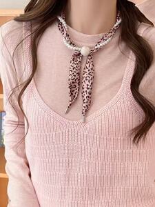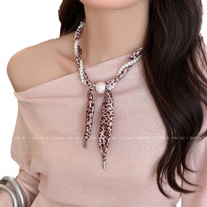粉色豹纹珍珠串珠项链女轻奢高级感毛衣链小众设计感时尚锁骨链女