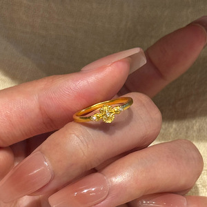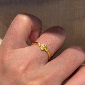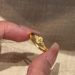 小红书爆款十字鸢尾开口戒指复古沙金食指戒指环轻奢百搭一件代发