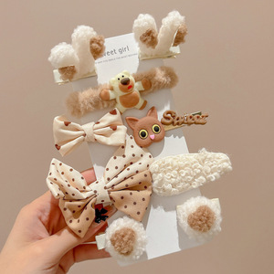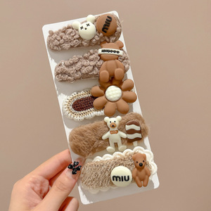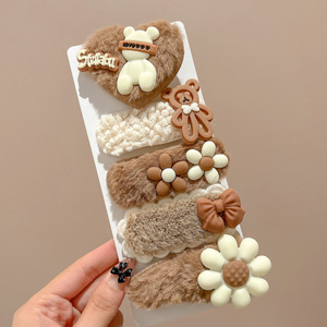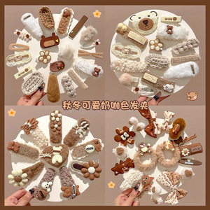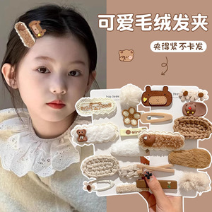 秋冬奶咖色毛绒发夹女儿童2025新款侧边刘海边夹可爱bb夹发卡发饰