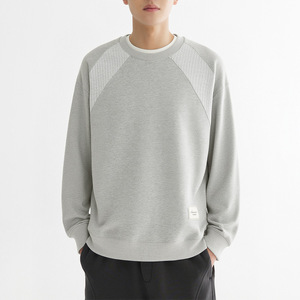 WOOG2005灰色拼接圆领卫衣男2025春秋季新款潮微宽松套头长袖上衣