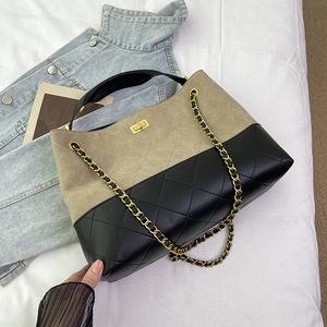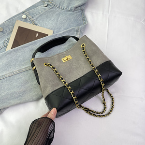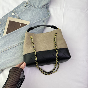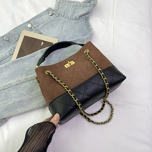 新款2025包包复古通勤棕色斜麂皮中挎单肩小香风链条包手提女女包