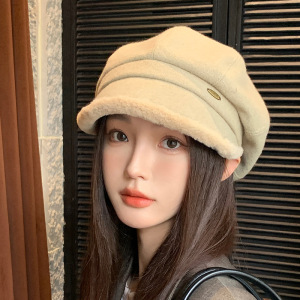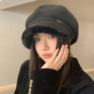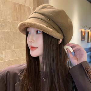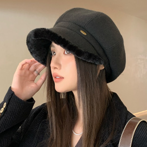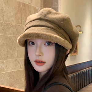 韩版时尚渔夫帽子女秋冬新款显脸小百搭盆帽加绒保暖护耳八角帽潮