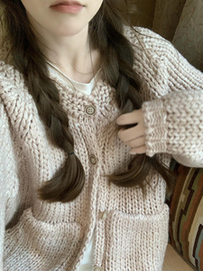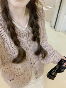 韩系慵懒风高级感粉色宽松毛衣女秋冬季穿搭2025新款针织开衫外套
