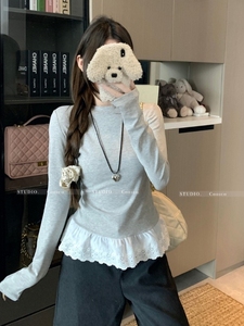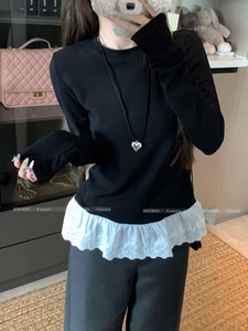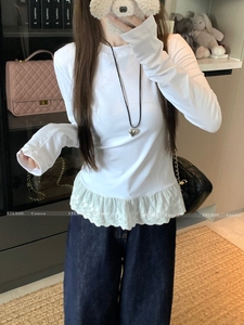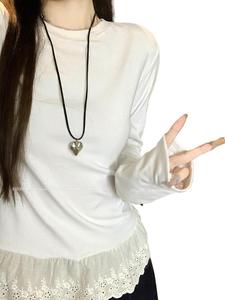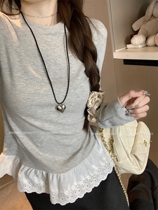微胖穿搭蕾丝花边长袖T恤女1春季2025新款小众显瘦芭蕾风叠穿上衣