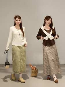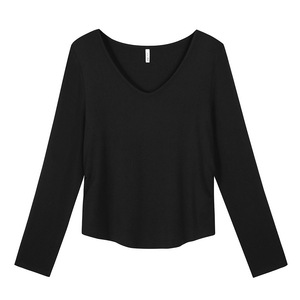 秋季新款气质V领正肩碎褶收腰加厚针织衫大码女装打底衫上衣66068
