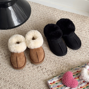 桑坡雪地靴儿童新款皮毛一体短筒翻毛口保暖棉鞋女童冬季兒童雪靴