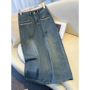 复古牛仔半身裙女秋季中长款2025新款时尚直筒包臀裙小个子a字裙