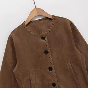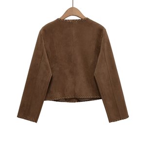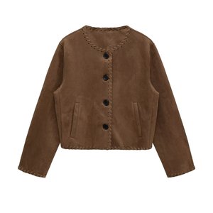 2025秋冬新品欧美跨境女装街头时尚绒面质感夹克外套 w027 9946