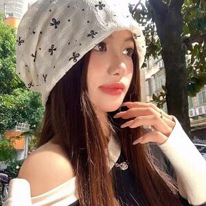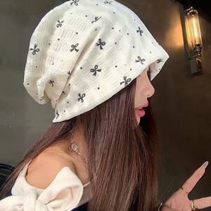 韩版蝴蝶结波点条纹包头帽2025款女秋季薄款透气百搭显脸小宽松堆