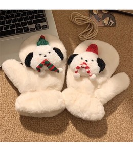 可爱圣诞小狗毛绒手套~送挂绳 加绒加厚