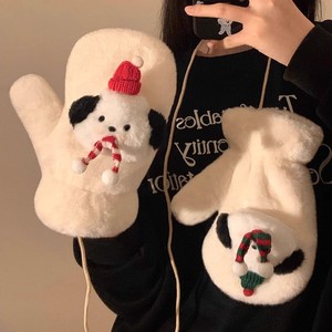 可爱圣诞小狗毛绒连指手套女冬季保暖挂脖加绒加厚学生防寒骑行车