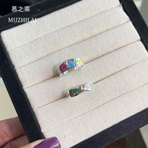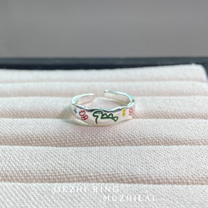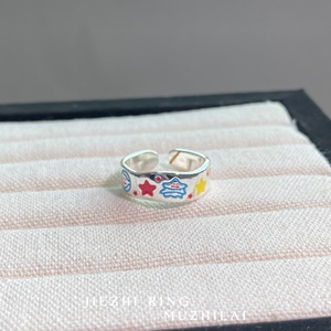 夏天多巴胺涂鸦彩绘星星卡通戒指女款小众设计可爱撞色食指戒开口