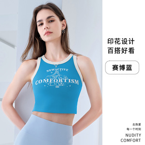 新款运动内衣固定杯印花长款外穿文胸春夏瑜伽普拉提健身背心女