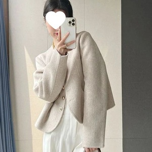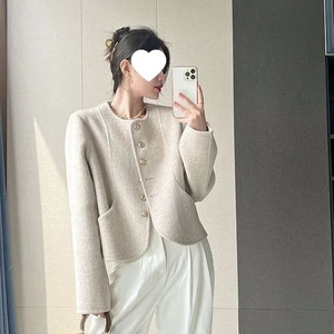 小香风外套女新款圆领单排扣双面呢子大衣女设计感小个子呢子上衣