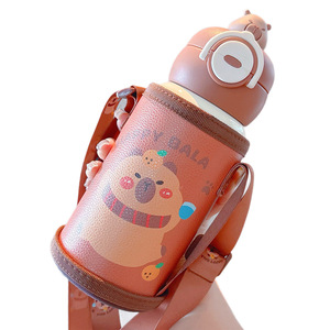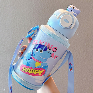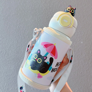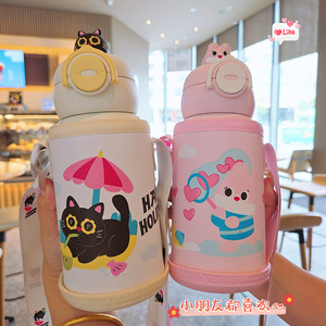 卡通可爱公仔316不锈钢儿童保温杯 户外便携斜防撞杯套双饮吸管杯