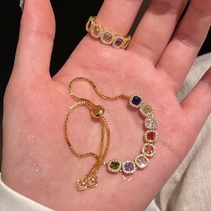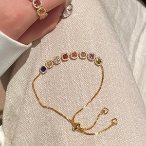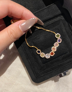 S925纯银爆闪满钻七彩方糖手链女轻奢时尚气质高级首饰送闺蜜礼物