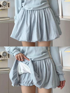 蓝色糯米花苞短裙女秋季2025高腰a字小个子防走光蓬蓬半身百褶裙