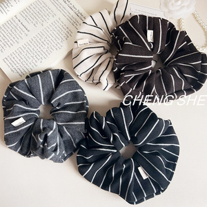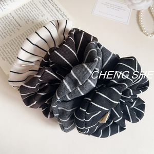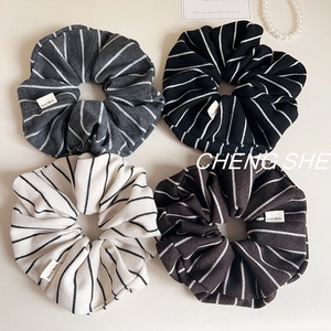 韩系简约学院风条纹大肠圈发圈慵懒风格发绳丸子头洋气绳皮筋发饰