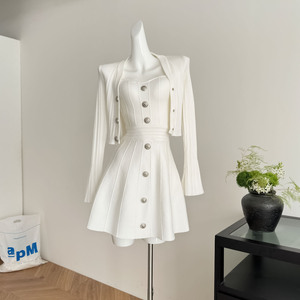 2025实拍小香银扣开衫+银扣抹胸裙气质两件套