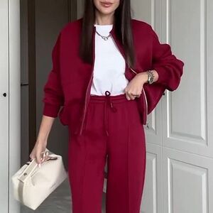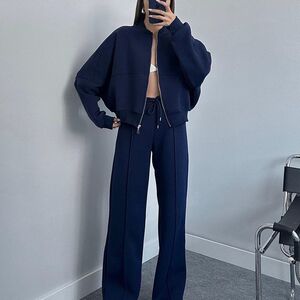 特大码圆领卫衣加休闲外套直筒裤2025年年秋冬季简约时尚春季