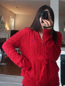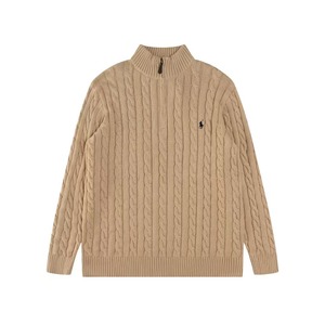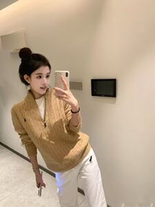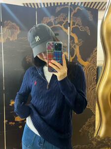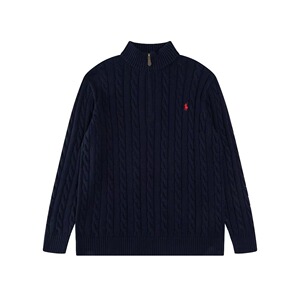 可扫码拉夫RL刺绣小马标经典款半拉链绞花针织毛衣百搭长袖上衣女