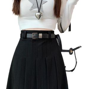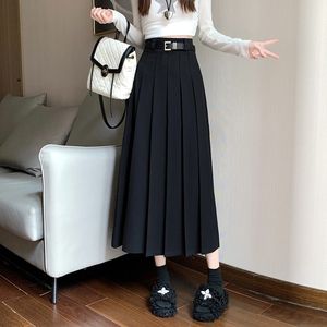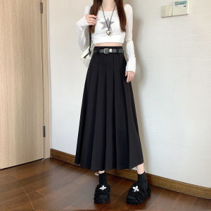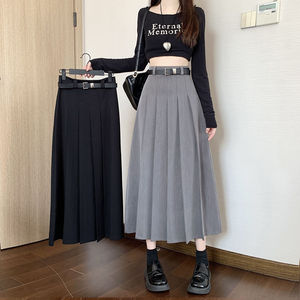 灰色西装中长半身裙2025秋季冬小众高腰a字裙显瘦气质休闲百褶裙