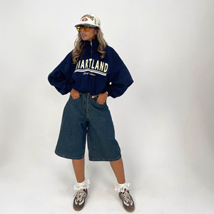 亚马逊跨境时尚美式复古百搭字母印花宽松潮牌高级感半拉链卫衣女