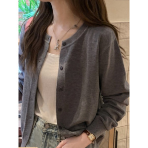 针织开衫外套女早秋薄款2025新款春秋白色圆领毛衣外搭时尚感上衣