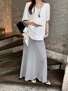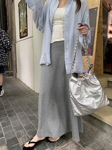 韩系灰色中长款垂感半身裙女2025秋冬季高腰显瘦百搭鱼尾A字裙子
