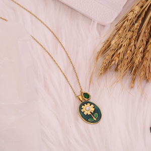 【冰萌】轻奢复古花朵吊坠项链小众不锈钢锁骨链跨境饰品N1643