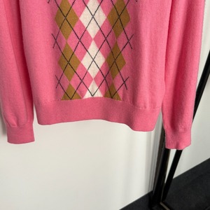 2025秋冬南油高端外贸新款撞色菱格子拉链翻领长袖羊毛针织衫上衣
