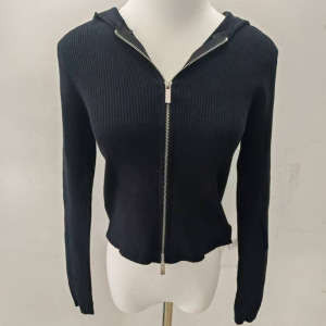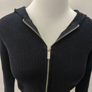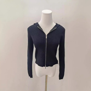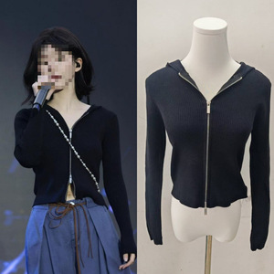 长期现货赵露思同款2025春季新款双拉链修身正肩黑色针织衫上衣女