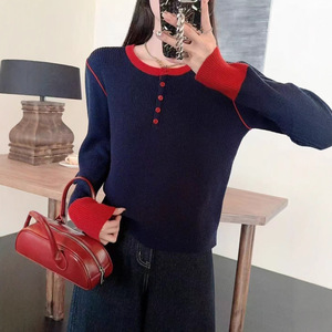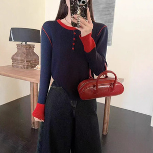 拼接撞色毛针织衫女2025年秋冬季新款休闲显瘦洋气内搭打底衫上衣