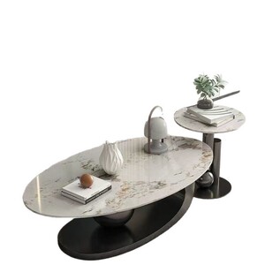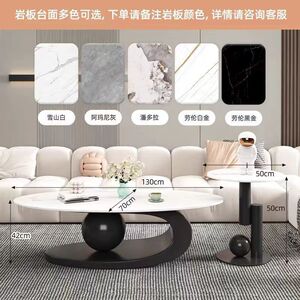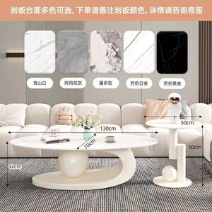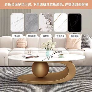 岩板茶几轻奢意式客厅家用椭圆形茶台小户型法式简约茶桌边几组合